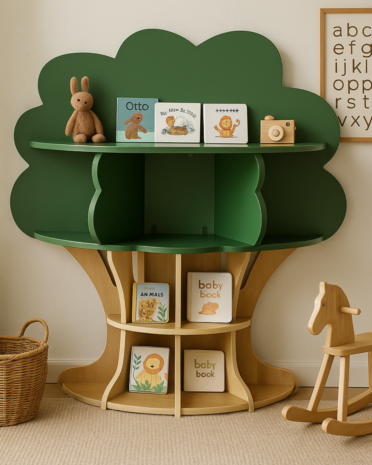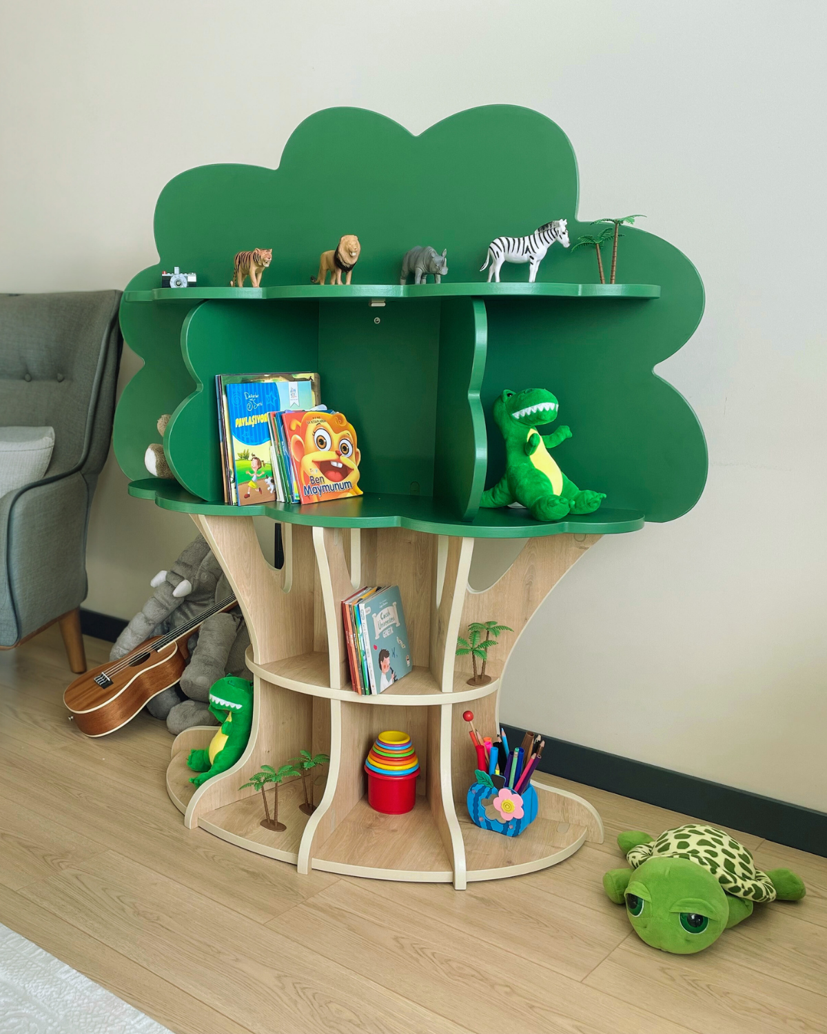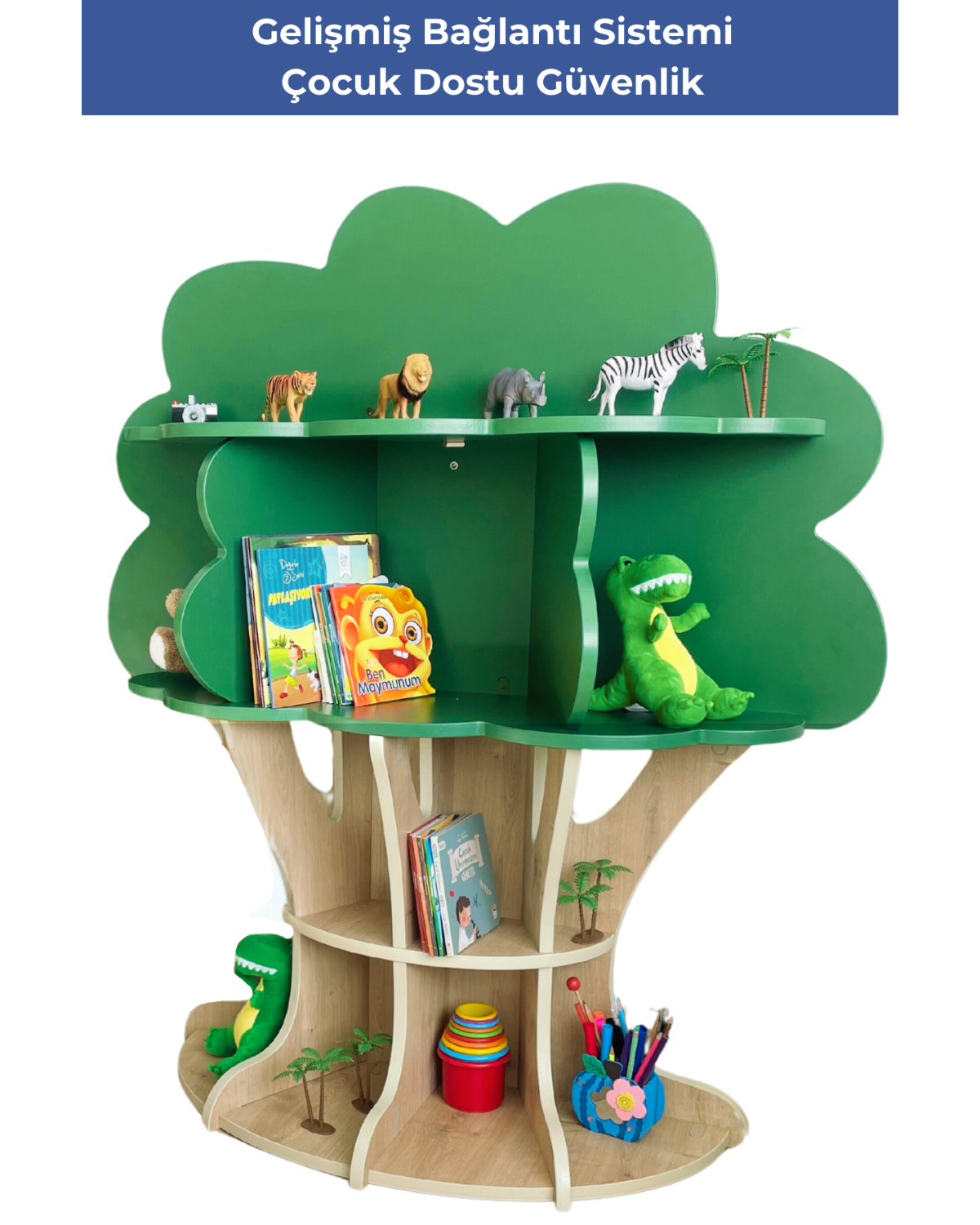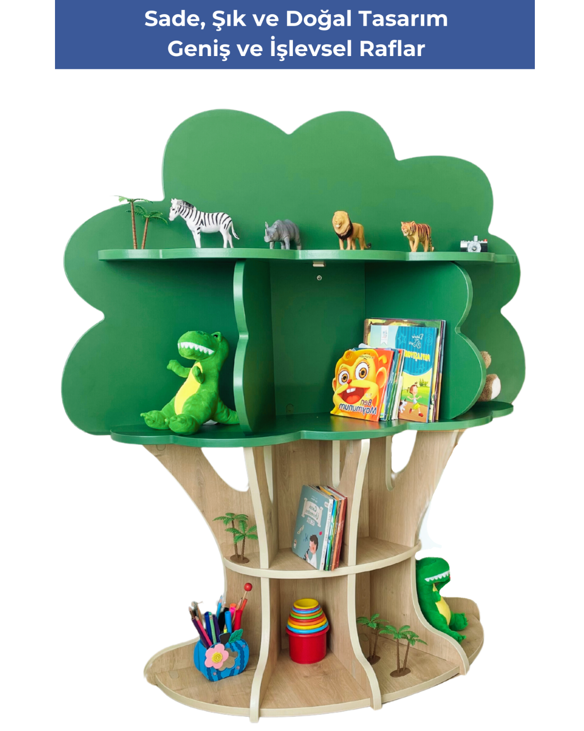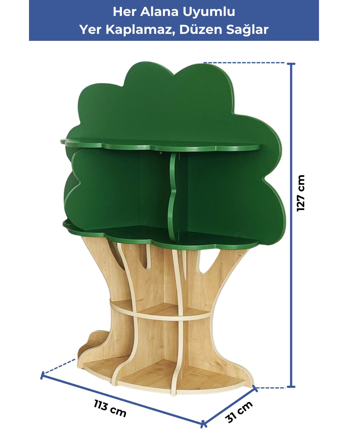 Ağaç Kitaplık; çocuk odalarında, kreşlerde, çocuk doktoru muayenehanelerinde ve aile danışmanı ofislerinde düzeni ve okuma alışkanlığını destekler.